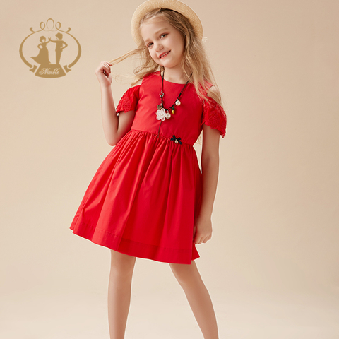 Vestido de verano de un solo hombro para niña, suave, algodón rojo puro, transpirable, informal