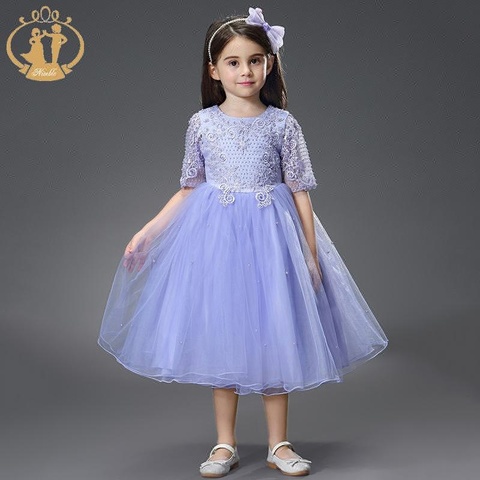 Nimble último diseño moda rebordear chico Floral niñas vestido de graduación para fiesta vestidos de baile púrpura flor niña vestido vestidos