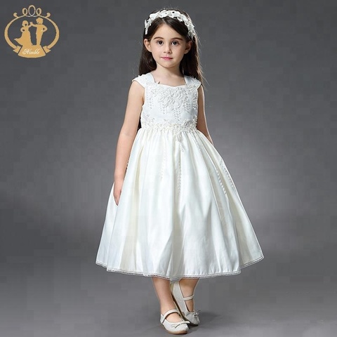 Nimble blanco bordado flor niñas vestidos de novia dama de honor vestido niños vestido de fiesta princesa ropa de cumpleaños