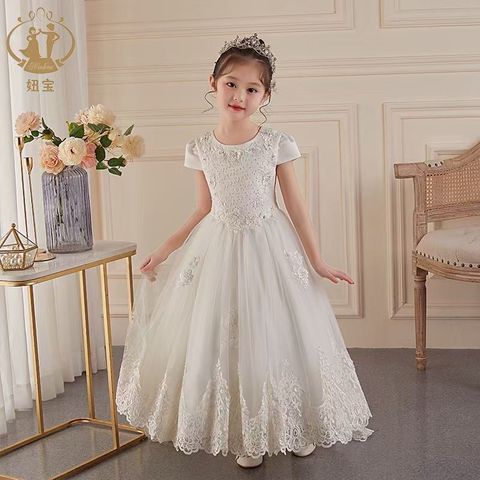 Nimble blanco elegante flor niñas vestidos boda niños fiesta ropa adolescente princesa vestido de primera comunión